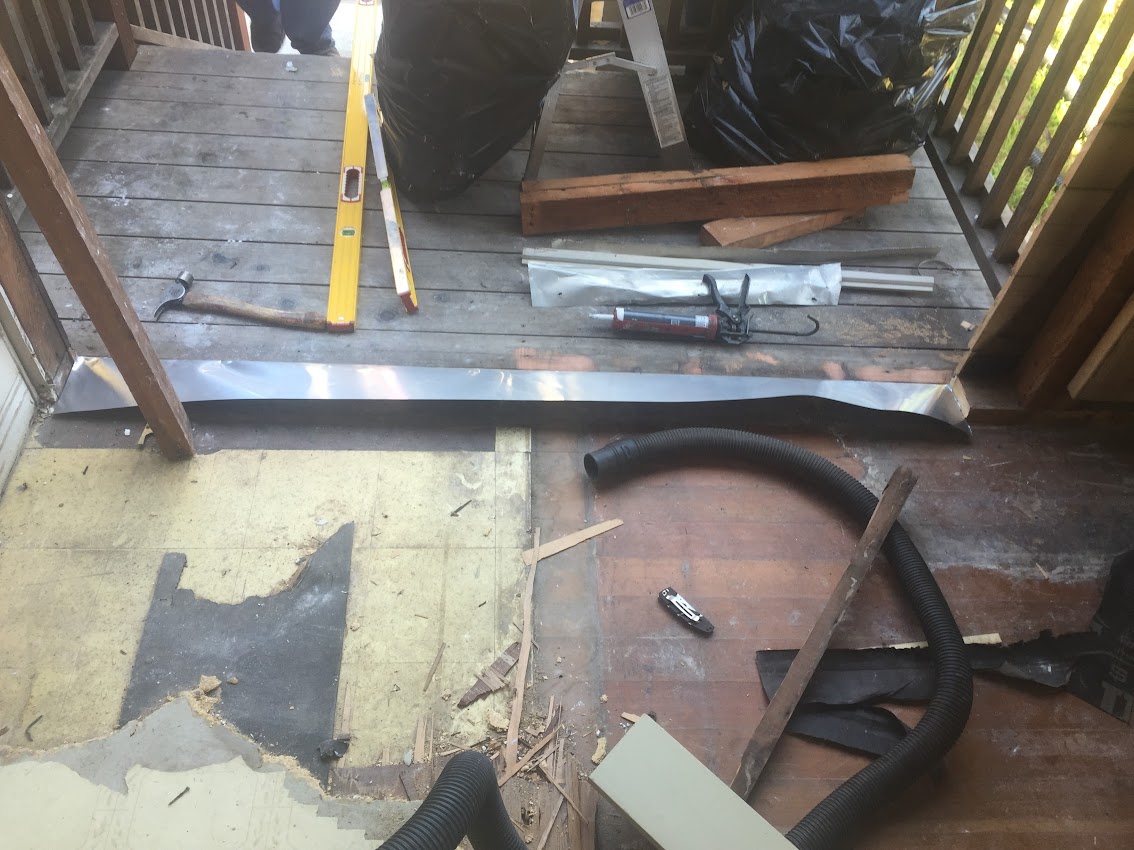 Tabitha helped me tear up some more of the flooring and clean the mess. See the new window on the right?